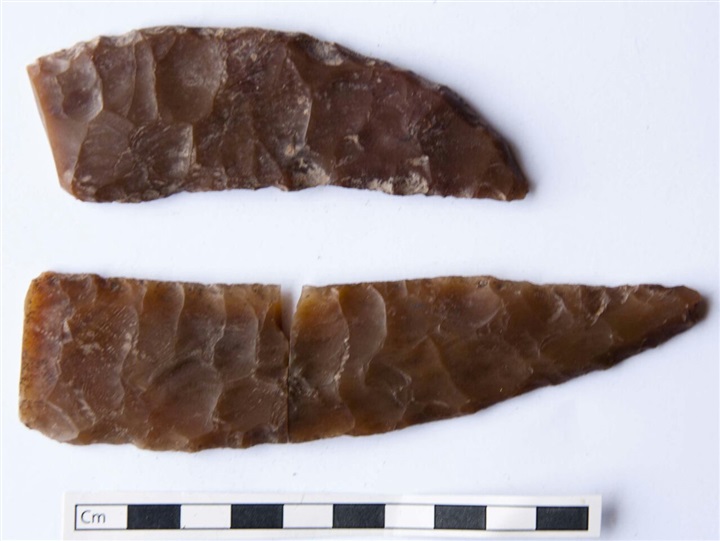 أما الدفنة الآدمية فهى الأولى من نوعها التى يتم الكشف عنها بالجزء الغربى من التل، وهى ترجع لنفس عصر الدفنة الحيوانية (عصر ما قبل الأسرات نقادة الثالثة)، حيث وجد بها شخص فى وضع القرفصاء وبجواره المتاع الجنائزى مكون من أوانى من الألباستر والفخار.